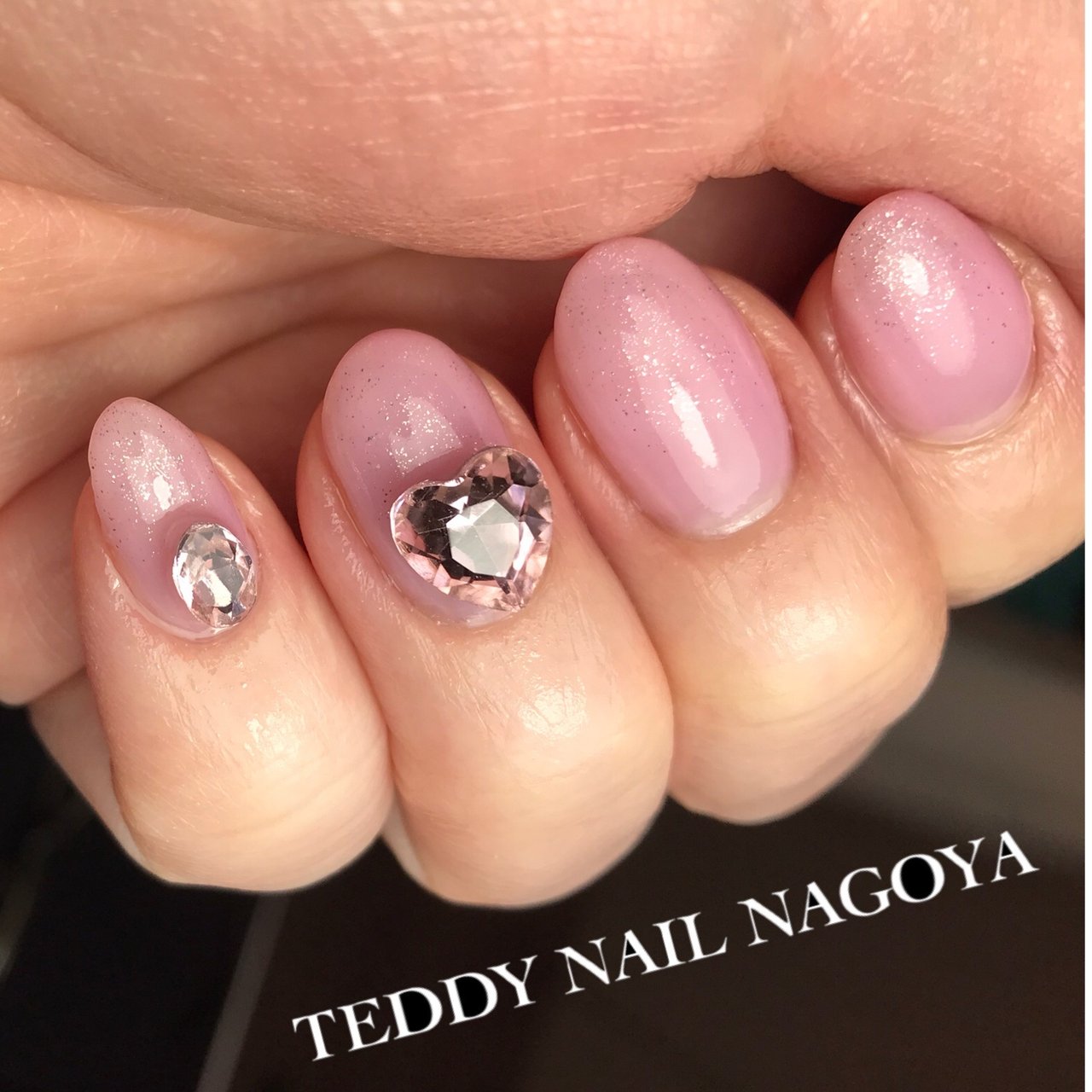 ハートスワロフスキーのキラキラデザイン 別府市ネイルサロン Espacio 別府市ネイルサロン 美フォルムと上品 個性派ネイル のエスパシオ Espacio